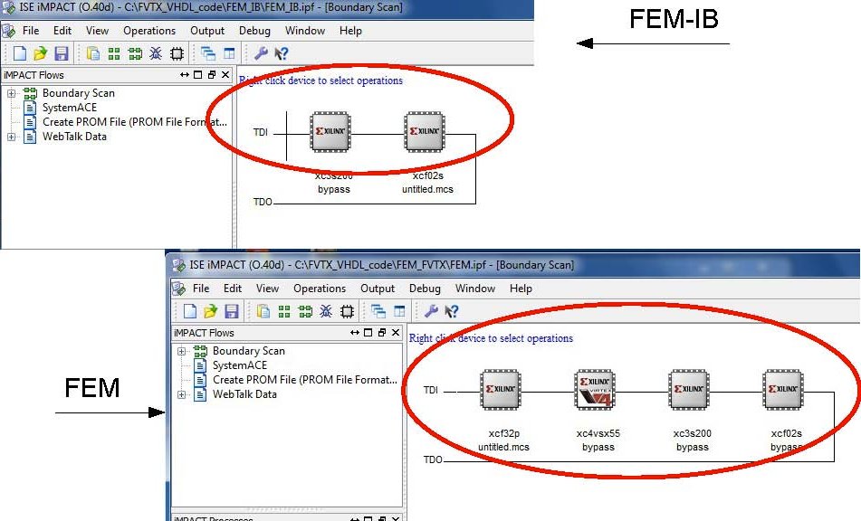 You should see 2 devices for FEM-IB and 4 for FEM board